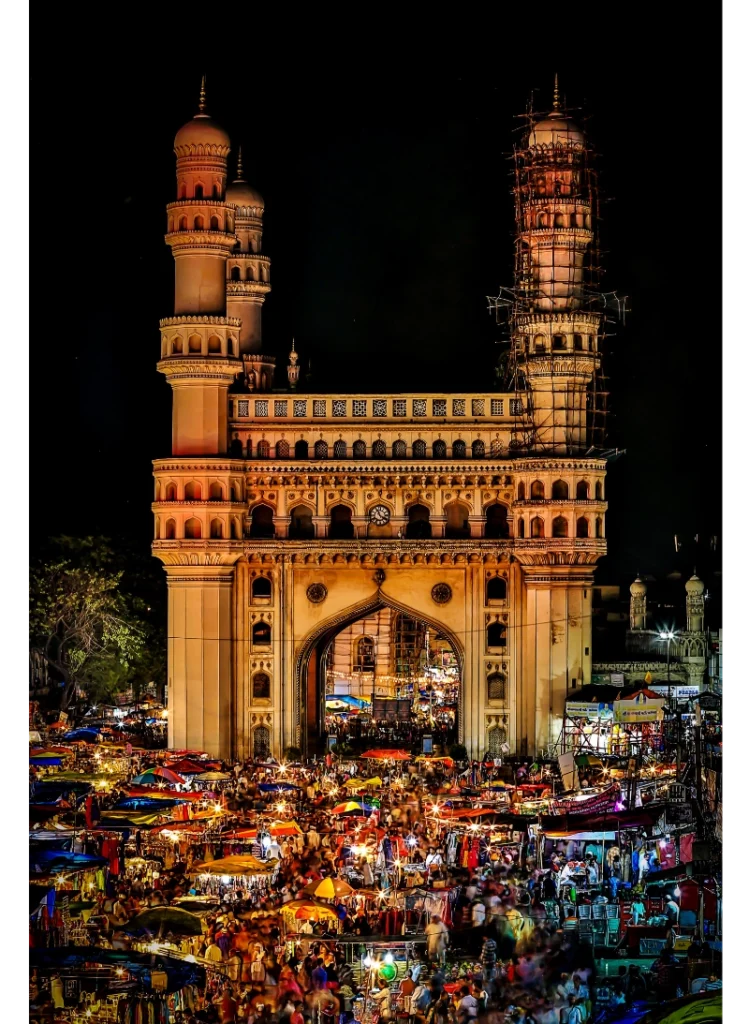 Charminar, Golconda Fort, Chowmahalla Palace, Salar Jung Museum, Hussain Sagar, Birla Mandir, Qutub Shahi Tombs, NTR Gardens, Snow World, Shilparamam, Statue of Equality, Ramoji Film City, and many more.